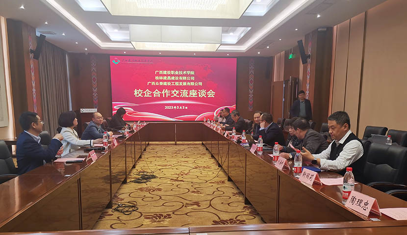 3月3日上午,桂林建昌建設(shè)有限公司總經(jīng)理劉興全一行到廣西建設(shè)職業(yè)技術(shù)學(xué)院考察交流。學(xué)校副校長梁偉,教務(wù)科研處、土木工程學(xué)院、市政與交通學(xué)院領(lǐng)導(dǎo),教師代表和建昌市政班學(xué)生代表參加座談會。
