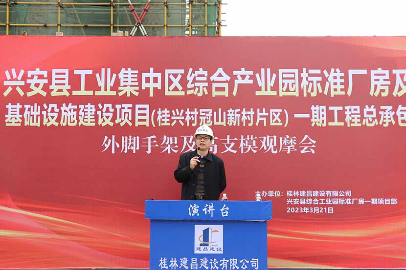 2023年3月21日,建昌公司組織各項(xiàng)目部管理人員60余人到興安縣工業(yè)集中區(qū)綜合產(chǎn)業(yè)園標(biāo)準(zhǔn)廠房及基礎(chǔ)設(shè)施建設(shè)項(xiàng)目(桂興村冠山新村片區(qū))一期開展高支模模板支架、外腳手架專項(xiàng)觀摩學(xué)習(xí)活動(dòng)。旨在提升公司整體危大工程管理水平,為項(xiàng)目管理人員提供一個(gè)交流學(xué)習(xí)的平臺(tái),增強(qiáng)管理人員發(fā)現(xiàn)問(wèn)題、解決問(wèn)題的能力,提高競(jìng)爭(zhēng)意識(shí)和團(tuán)隊(duì)精神,夯實(shí)基礎(chǔ)管理能力。