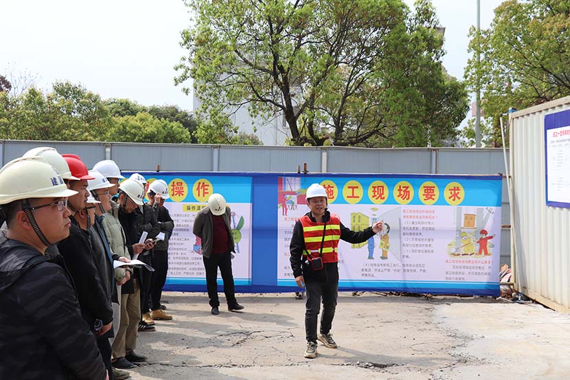 觀摩前,公司總裁蔣建林發(fā)表了講話。他對(duì)該項(xiàng)目部安全生產(chǎn)規(guī)范化建設(shè)給予了肯定,他指出興安縣工業(yè)集中區(qū)綜合產(chǎn)業(yè)園標(biāo)準(zhǔn)廠房及基礎(chǔ)設(shè)施建設(shè)項(xiàng)目是在搶工期、搶進(jìn)度的情況下,為我們提供本次觀摩學(xué)習(xí)活動(dòng),他希望大家能夠珍惜這次來(lái)之不易的機(jī)會(huì),認(rèn)真學(xué)習(xí),有所收獲。同時(shí),他強(qiáng)調(diào)盡管近年來(lái)公司持續(xù)不斷的改進(jìn)和加強(qiáng)施工安全文明標(biāo)準(zhǔn)化建設(shè),也取得了一定的成績(jī);但是很多項(xiàng)目施工現(xiàn)場(chǎng)管理仍然存在許多問(wèn)題,需要各項(xiàng)目部同志們引起高度重視,任何管理人員都不得馬虎。希望通過(guò)本次觀摩學(xué)習(xí)活動(dòng)學(xué)其所長(zhǎng),避其所短,全面提升公司項(xiàng)目管理水平。隨后,該項(xiàng)目項(xiàng)目經(jīng)理盧文敏介紹了項(xiàng)目概況、建設(shè)進(jìn)展等方面情況并結(jié)合項(xiàng)目實(shí)際生動(dòng)、全面的與大家分享了項(xiàng)目管理經(jīng)驗(yàn),讓大家深受啟發(fā)。