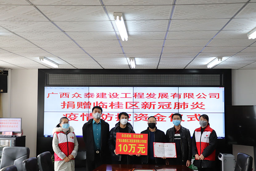 桂林建昌建設有限公司和廣西眾泰建設工程發(fā)展有限公司多年來始終堅持“源自社會,回饋社會”的辦企宗旨,不忘初心,牢記使命,努力弘揚社會正能量,主動承擔社會責任,受到社會各界的廣泛認可和好評。在這次抗擊疫情工作中,再次用大愛詮釋了民營建筑企業(yè)的奉獻和擔當,為打贏抗疫戰(zhàn)爭做出了積極貢獻。我們堅信在黨中央的堅強領導和全國人民的共同努力下,我們一定能快速打贏這場突如其來的疫情防控阻擊戰(zhàn)!