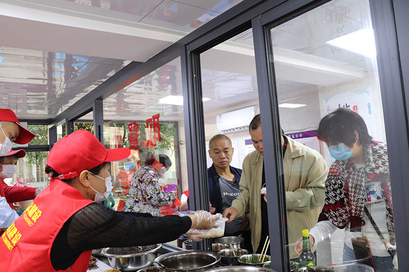 “這下好了,有了‘愛心食堂’,下雨方便了,在家里樓下就可以吃早點(diǎn)了,我睡在床上都在想這件事情,感覺社會很溫暖。”臨桂金山社區(qū)居民夏良玉夫婦一邊開心的吃著早餐,一邊不住的為“愛心食堂”點(diǎn)贊。