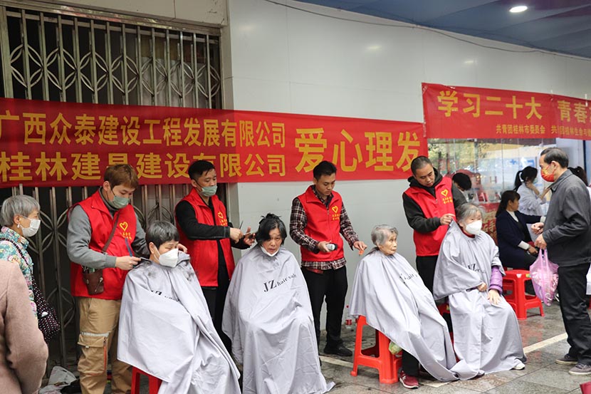 在這春意盎然的陽(yáng)春三月,桂林建昌建設(shè)有限公司公益服務(wù)再添新項(xiàng)目,愛老護(hù)老更進(jìn)一步。3月8日上午,繼2月開辦“愛心食堂”之后,建昌公司、眾泰公司聯(lián)合組織開展的公益項(xiàng)目“愛心理發(fā)”正式開啟,與“愛心食堂”相呼應(yīng),長(zhǎng)期為周邊環(huán)衛(wèi)工人、低保人群、獨(dú)居老人、孤寡老人、殘障人士等特殊群體免費(fèi)提供理發(fā)、餐食服務(wù),擴(kuò)大愛心服務(wù)范圍,升華愛心服務(wù)品質(zhì),打造居家養(yǎng)老服務(wù)站。